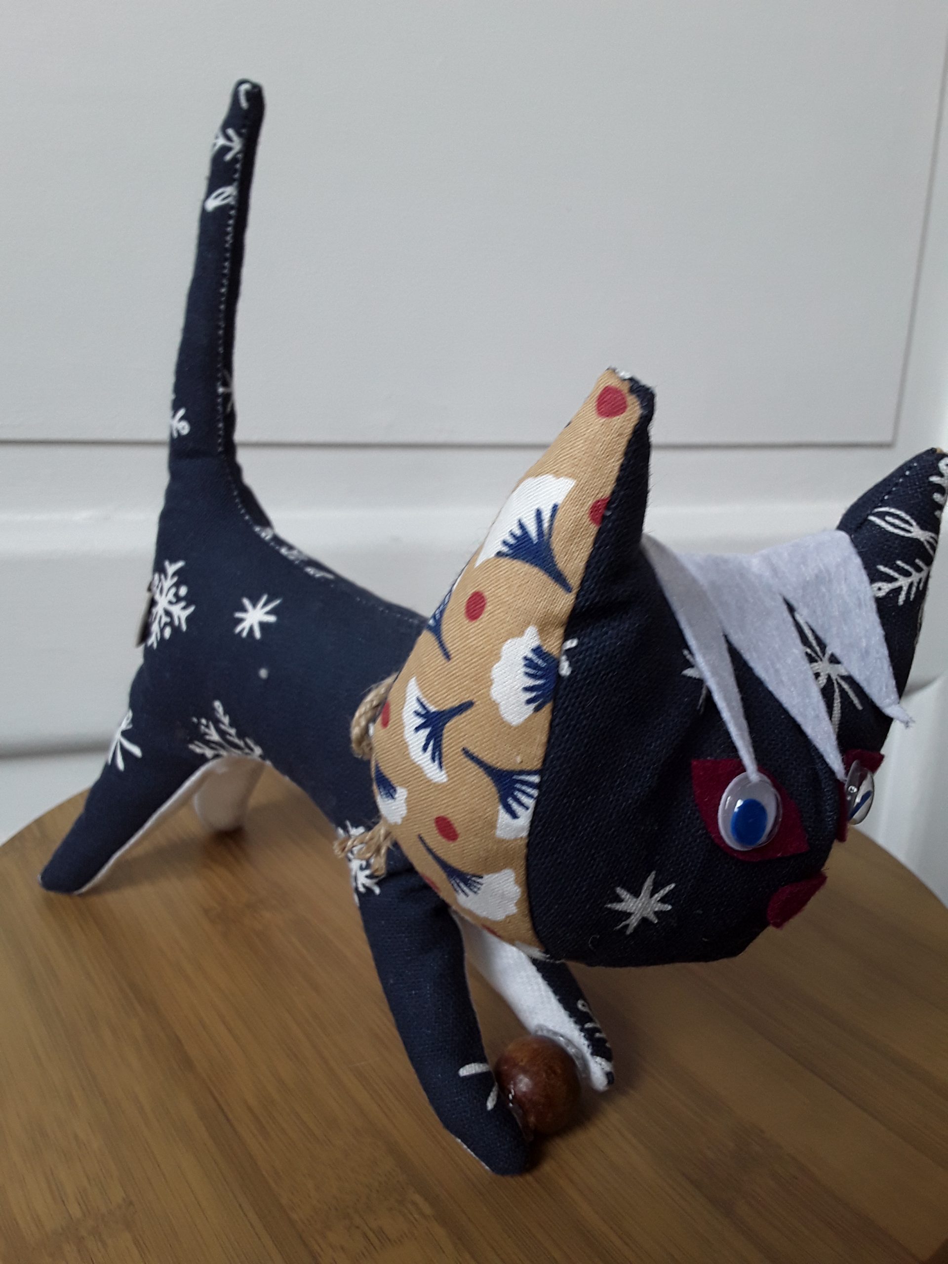 Objet décoratif réalisé à partir de chutes de tissus et matériaux récupérés