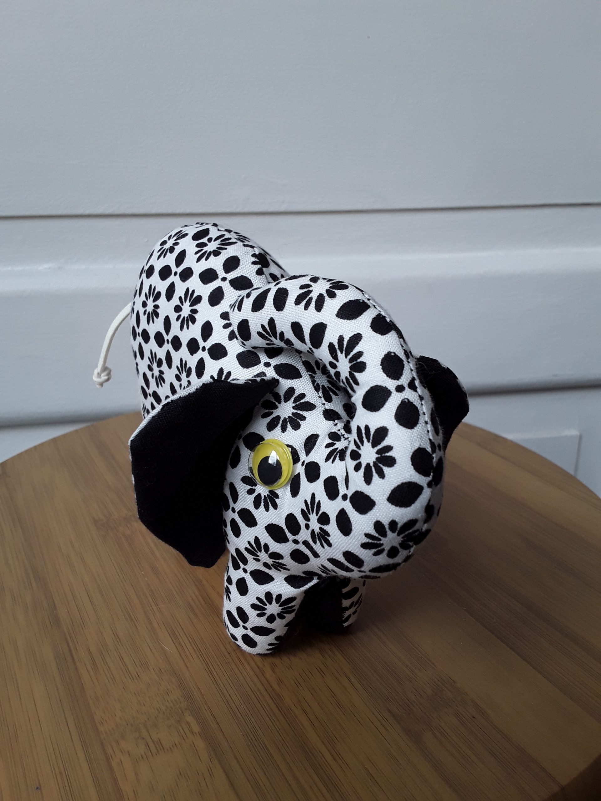 Objet décoratif réalisé à partir de chutes de tissus et matériaux récupérés