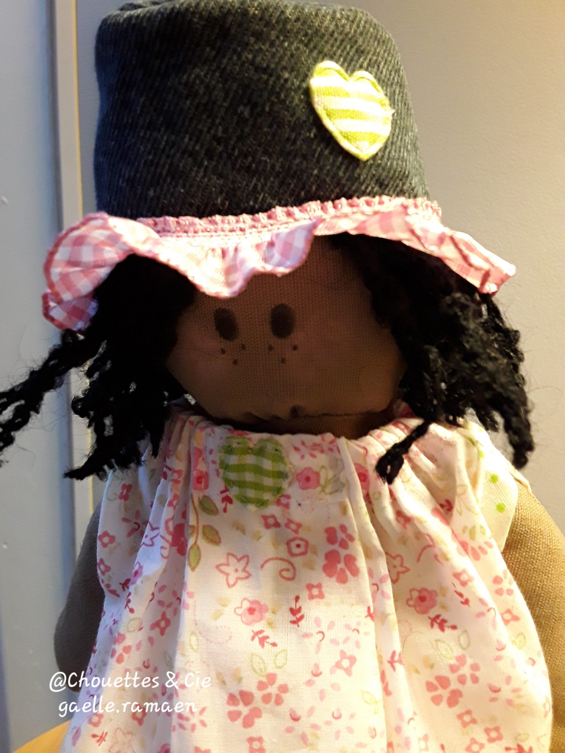 Poupée modèle unique réalisée à partir de chutes de tissus et matériaux récupérés